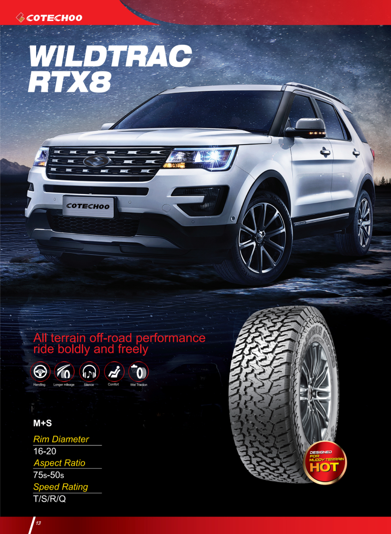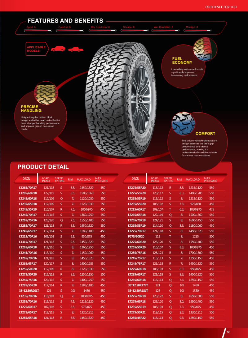 獨特花紋設計,在非鋪裝路面上具有超強的耐用性和抓地力,是一款適用各種路況的越野專(zhuān)用輪胎。