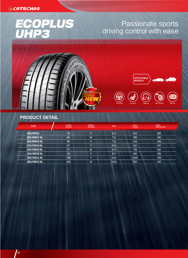 全新設計運動(dòng)型花紋,應用高含量白炭黑配方,提供優(yōu)秀的抗濕滑性能,澎湃運動(dòng),駕控自如。
