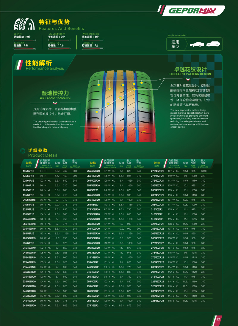 新能源汽車(chē)用EV輪胎,全新花紋設計,具有良好操控性與優(yōu)秀靜音性,低滾阻配方,讓您的新能源汽車(chē)更省電。